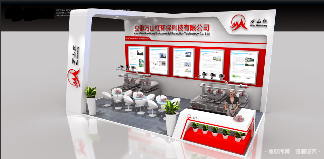 2019年5月28-30日安徽萬山紅環保科技有限公司參加2019年中國(合肥)國際環保產業博覽會展位54平方。