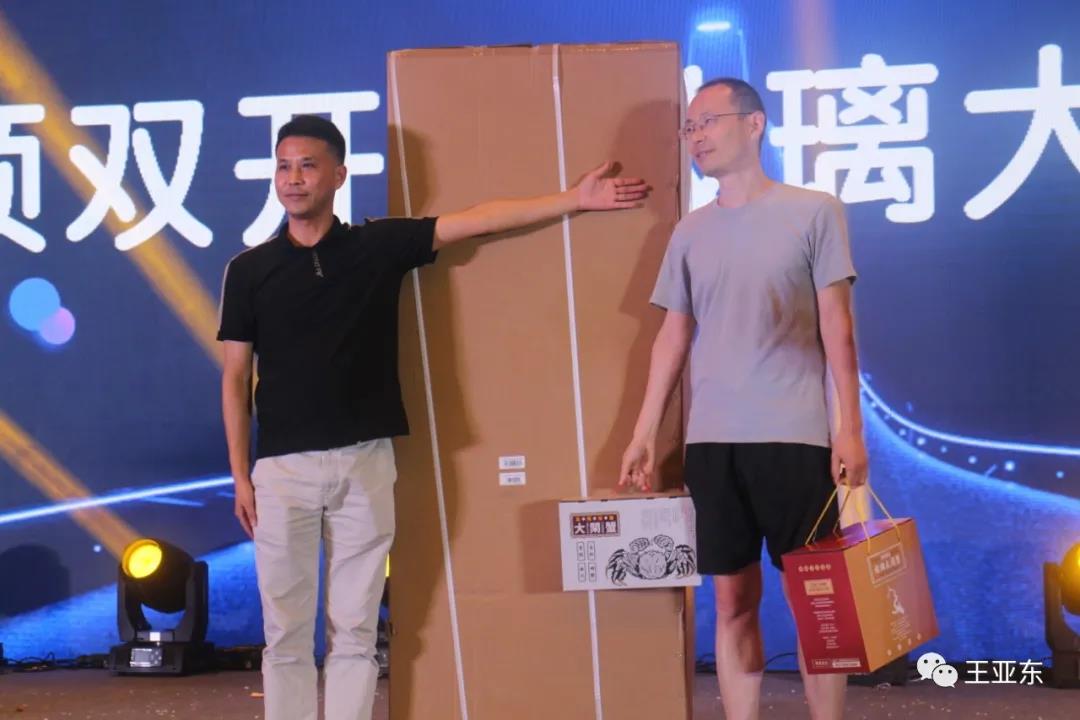 激情晚宴環(huán)節(jié)離不開抽獎,有特制頂級保溫杯,鮮嫩可口的芳香雞,陽澄湖牌大閘蟹,乾川烤肉套餐、煥源坤家庭健康套餐,黑石渡石斛套裝、神秘大獎——家用玻璃門電冰箱等。